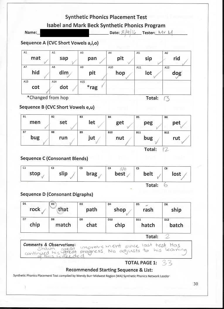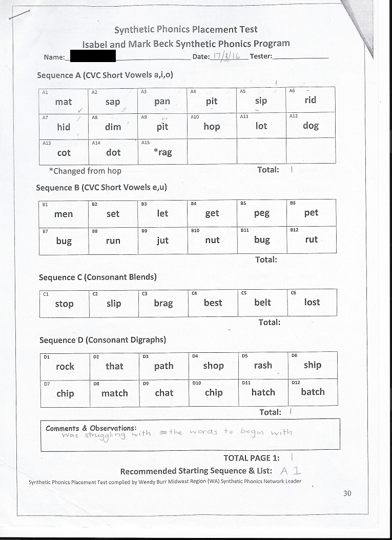 Synthetic Phonics is a program that is very strongly based on customizing the right program to meet the individual needs of the students. As a result, it is very important that the diagnostic testing in analysed correctly.